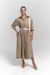 Lela Belden Büzgülü Kol Detaylı Bisiklet Yaka Regular Fit Bayan Elbise 6058386 VİZON - Image 1