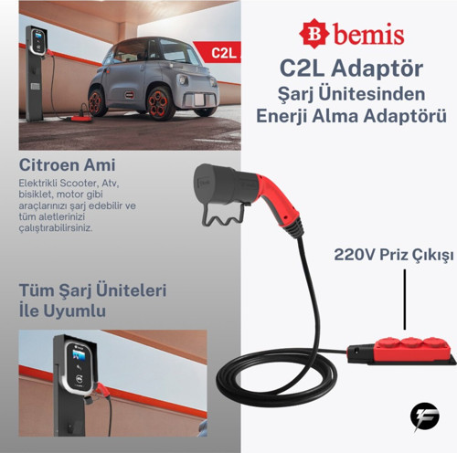 Bemis C2L (Charger To Load) Elektrikli Araç Şarj Ünitesinden Enerji Alma Adaptörü 3 'Lü – 3 Metre