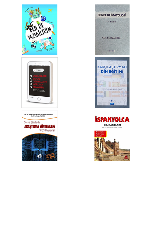 Ben De Yazabilirim - Genel Klimatoloji - Kapat! Çocukları Sanal Dünyada(n) Koruma Kılavuzu - Karşılaştırmalı Din Eğitimi - Sosyal Bilimlerde Araştırma Yöntemleri - SPSS Uygulamalı - İspanyolca Dil Kartları