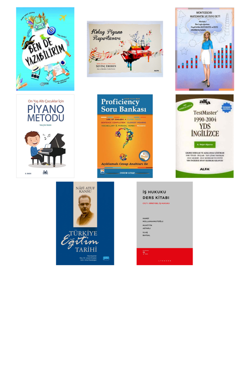 Ben De Yazabilirim - Kolay Piyano Repertuvarı - Montessori Matematik ve Duyu Seti - On Yaş Altı Çocuklar İçin Piyano Metodu - Proficiency Hazırlık Atlama Sınavı Soru Bankası - TestMaster 1990-2004 Yds İngilizce - Türkiye Eğitim Tarihi - İş Hukuku Ders Kitabı - Cilt:1 Bireysel İş Hukuku