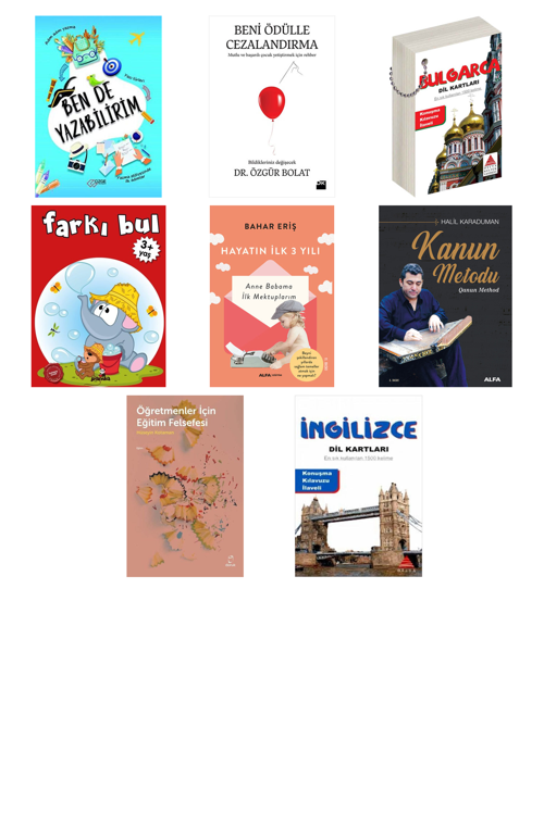Ben De Yazabilirim - Beni Ödülle Cezalandırma - Bulgarca Dil Kartları - Farkı Bul - Hayatın İlk Üç Yılı - Kanun Metodu - Öğretmenler İçin Eğitim Felsefesi - İngilizce Dil Kartları