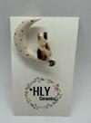 - El yapımı bu özel seramik iğne, krem tonlarında benekli ay üzerinde oturan üç renkli bir kedi figüründen oluşur.