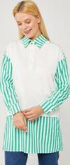 Benetton Çizgili Poplin Kumaş Karışımlı Sweat