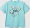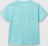 Benetton markasının erkek bebek tişörtü, canlı ve enerjik bir renk olan turkuaz ile tasarlanmıştır.
