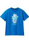 Benetton'un kaliteli ve şık tasarımıyla öne çıkan bu erkek çocuk tişörtü, mavi rengiyle dikkat çeker.