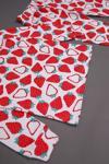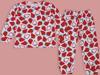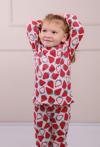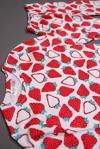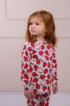 Çilek desenleriyle süslenmiş, çocukların beğenisine sunulan bu pijama takımı, şık ve eğlenceli bir görünüm sağlar