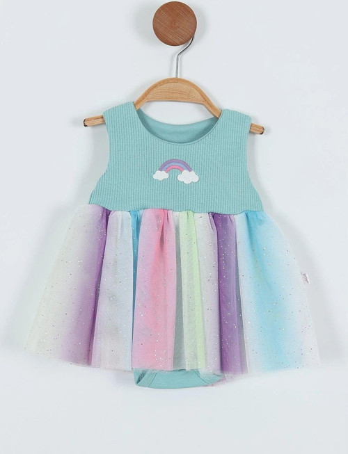 Gökkuşağı Nakışlı Alttan Çıtçıtlı Kız Bebek Elbise ; 6-18 Ay Seçenekleriyle ; Ürün İçeriği %100 Pamuktur.; ; Prensesleriniz İçin Özel Tasarlanmıştır.; ;