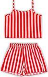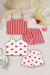 - Rahat ve şık bir uyku deneyimi sunan kalpli ve çizgili askılı üst ile kısa şorttan oluşan 2'li kız çocuk pijama takımı, yaz aylarında serinlik ve konfor sağlar.