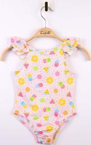Fırfır detayları ile şık ve eğlenceli bir görünüm kazandırırken, dalgıç/scuba dokuma tipi suyun içinde rahatlık sunar