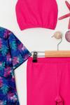 - Yaprak desenleriyle süslenmiş, her yaştan kız çocuğunun enerjisine uyum sağlayan üçlü mayo seti.