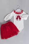 - Yılbaşı temalı baskısıyla dikkat çeken bu etekli Noel takım, şıklığınızı tamamlar.