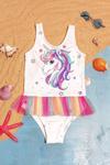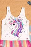 - Yaz sezonuna uygun renkli tül detaylarıyla süslenmiş, göz alıcı yıldız desenli kız çocuk mayosu.