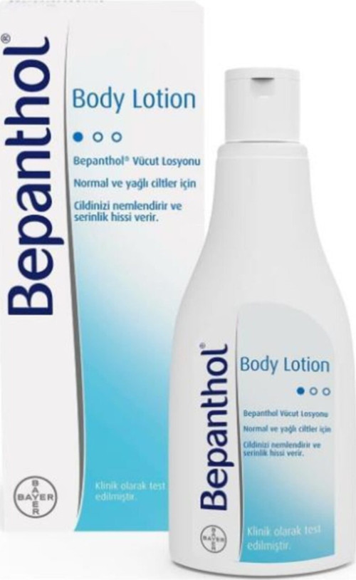 Bayer Bepanthol Vücut Losyonu 200ml | Body LotionBakım Kremi Ürün Özelliği: • Ciltle uyumu ve etkisi dermatolojik olarak test edilmiş ve onaylanmıştır. • Cilt, güneş ışınlarına, rüzgara ve suyla sık temasa karşı kuruyarak hassaslaşabilir. • Bepanthol® Vücut Losyonu, cildin sahip olduğu bariyeri koruyarak, cildin esnek ve nemli tutulmasına yardımcı olur. İçeriğindeki Provitamin B5 cildi derinlemesine nemlendirir. • Cildi hızla rahatlatır ve ferahlatır. Cilde uygulandıktan kısa bir süre sonra cilt pürüzsüz ve bakımlı bir görünüm kazanır. Ciltle uyumu ve etkisi dermatolojik olarak test edilmiştir. • Normal ve yağlı ciltler için geliştirilmiş Provitamin B5 içeren Bepanthol® Vücut Losyonu, kuruyarak hassaslaşan cildinizin esnek ve nemli tutulmasına yardımcı olur. Cildi serinletir, ferahlatır ve hızla rahatlatır. Ürün Kullanımı