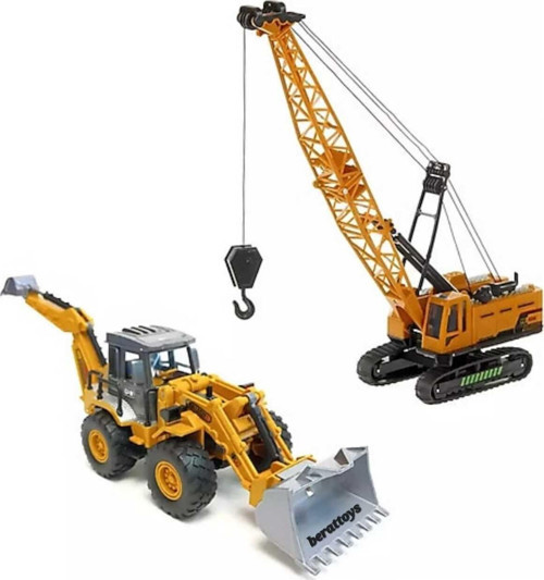Berat Toys İkili İş Makinaları Vinç Ve Buldozer Kırılmaz Oyuncak İş Araçları İnşaat Set Dozer