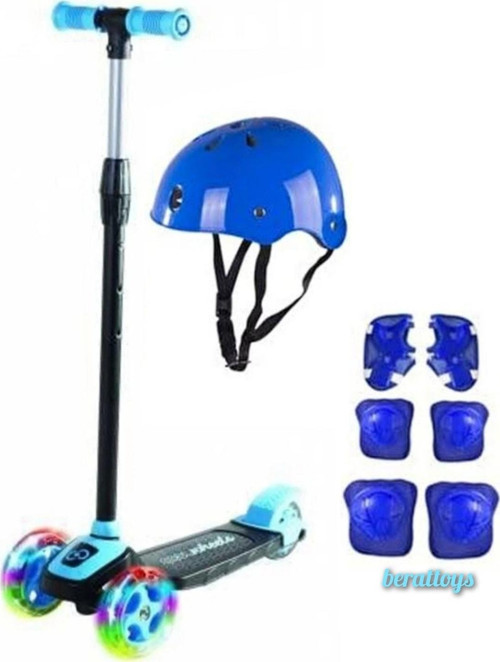Işıklı Scooter 3 Tekerlekli Kask Dizlik Set Twist Scooter Koruyu Ful Set Çocuk Scooter Işıklı 3 tekerlekli scooter 3 kademeli yükseklik ayarlı Max