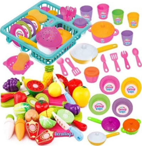 Berat Toys Oyuncak Bulaşık Set Mutfak Set Tabak Tencere Toplam 35 Parça Kesilen Meyve Cırtlı Meyyve Sebze