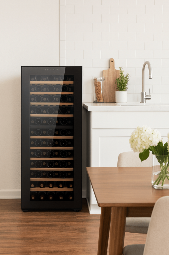 - Kompresör Soğutma: Sessiz ve titreşimsiz çalışma ile şarabın doğal yapısını ve yıllanma sürecini korur.