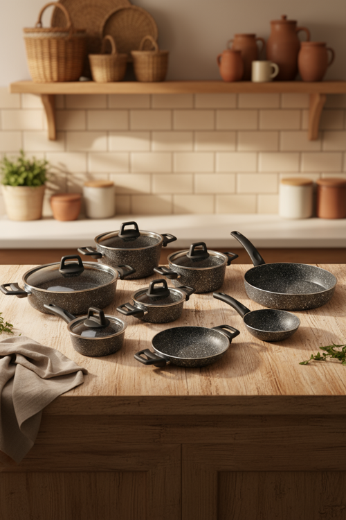Bernardo Anita Tencere Seti, çeşitli yemekleri pişirmek için tasarlanmıştır. Derin tencereler çorba, makarna ve sebze yemekleri için idealdir. Sığ tencereler et, tavuk ve pilav gibi yemeklerin hazırlanmasında kullanılır. Tavalar, kızartma ve omlet yapımı için uygundur. Sosluklar ise sos ve küçük porsiyonlu yemekler için kullanılır. İndüksiyon tabanı sayesinde ısıyı eşit şekilde dağıtarak yemeklerin daha lezzetli pişmesini sağlar. Günlük yemek pişirme ihtiyaçlarını karşılamak ve mutfakta pratik çözümler sunmak amacıyla tasarlanmıştır.