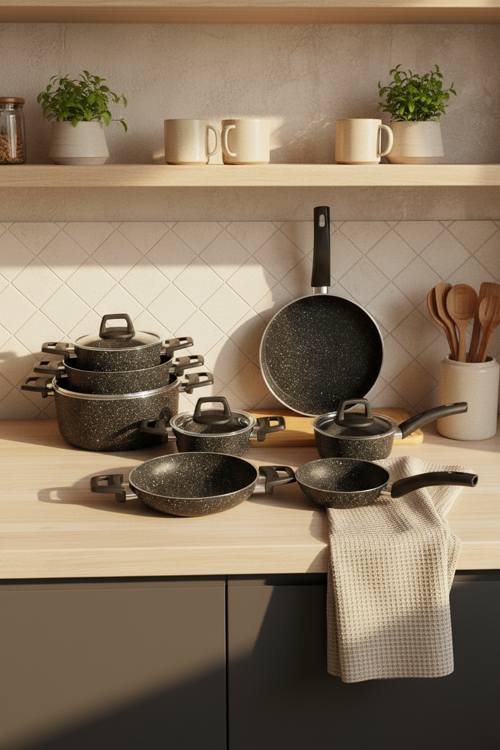 Bernardo Anita Tencere Seti, çeşitli yemekleri pişirmek için tasarlanmıştır. Derin tencereler çorba, makarna ve sebze yemekleri için idealdir. Sığ tencereler et, tavuk ve pilav gibi yemeklerin hazırlanmasında kullanılır. Tavalar, kızartma ve omlet yapımı için uygundur. Sosluklar ise sos ve küçük porsiyonlu yemekler için kullanılır. İndüksiyon tabanı sayesinde ısıyı eşit şekilde dağıtarak yemeklerin daha lezzetli pişmesini sağlar. Günlük yemek pişirme ihtiyaçlarını karşılamak ve mutfakta pratik çözümler sunmak amacıyla tasarlanmıştır.