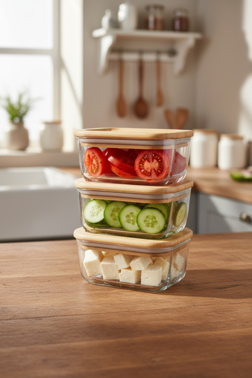Cam malzeme, gıdalarla temasında kimyasal reaksiyona girmez. Bu sayede gıdaların doğal lezzetini ve besin değerini korur. Bambu kapaklar, antibakteriyel özelliklere sahiptir.