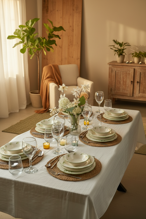 Bu yemek takımı, evde günlük yemeklerde, özel akşam yemeklerinde, davetlerde ve misafir ağırlamada kullanılabilir. Restoran ve kafeler için de şık bir seçenektir.