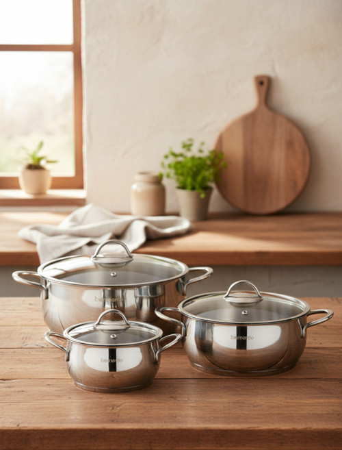 Bernardo Monde 6 Parça Derin Çelik Tencere Seti, çorbalar, sulu yemekler, makarnalar, sebze yemekleri ve daha birçok farklı yemeği pişirmek için idealdir. Günlük kullanım için uygundur ve mutfaktaki en büyük yardımcınız olacaktır.