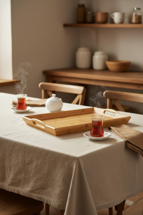 - Kullanım Alanları: Kahvaltı servisi, sunum tepsisi, dekoratif amaçlı kullanım, mutfak gereçleri