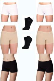 - Ekonomik 6'lı paket avantajıyla, pakette 6 adet düz desenli kadın boxer bulunur.