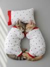 kedi uyku seti, kemique, kedi tulumu, kedi pijaması, pamuklu kedi tulumu, cat pajama set, kedi mini yastık, penye kedi tulumu, tüy dökülmesini azaltan kedi kıyafeti, kedi uyku tulumu, gri kedi tulumu, küçük kedi kıyafeti, pet fashion, cat sleepwear, mini cat outfit, kedi aksesuar seti