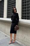 Rahat ve şık bir kullanım sunan Bert Sırt Dekolteli Balon Kol Midi Triko Elbise, günlük kombinlerinizde zarif bir dokunuş sağlar.