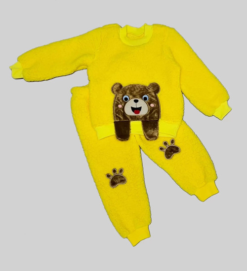 Beruflic 1-2-3 Yaş Sallanan El Ayıcıklı Kuzu Kumaş Sweat Patili Pantolon Uzun Kollu Kız Erkek 2 Li Takımı Sar