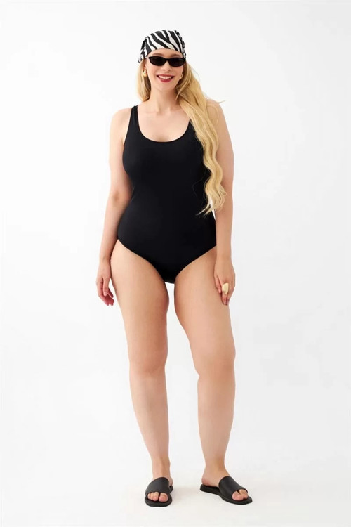 Büyük beden mayo arayan kadınlar için Çamaşır Kenti markasının zarif ve şık tasarımı siyah düz tek parça mayo! Bu mayo ile plajda rahatlıkla güneşlenebilir, denize girebilirsiniz. Rahat kesimi ve büyük beden seçeneğiyle vücudunuza tam oturacak şekilde tasarlanmıştır.