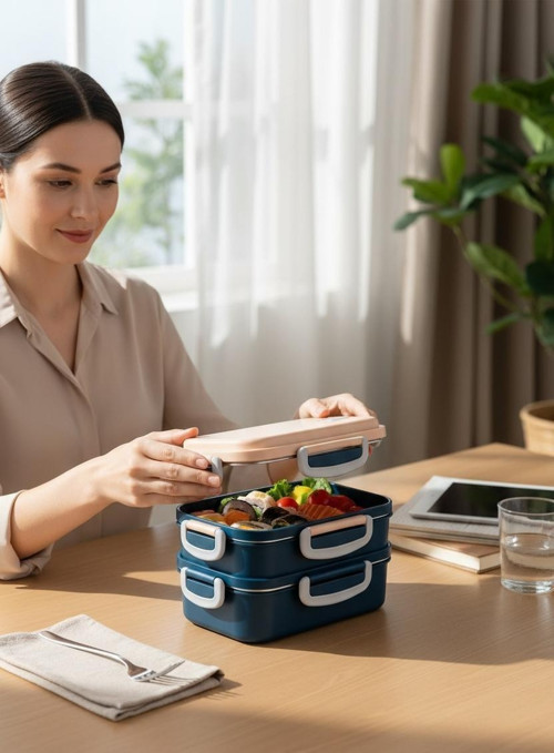kulplu çelik sefer tası - yemek termosu saklama kabı 2 katlı 400+450=850ml.