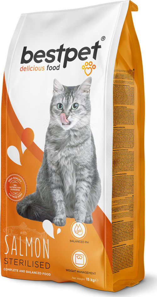 Bestpet Yetişkin Kısırlaştırılmış Kediler İçin Somonlu Kuru Mama – Sağlıklı ve Dengeli Beslenme ÇözümüKısırlaştırılmış kedilerin beslenme ihtiyaçları, normal kedilere göre farklıdır.