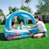 Yüksek konfor sağlayan kaliteli vinil malzemesi ve dolgulu tabanı sayesinde bu şişme havuz sağlam ve dayanıklıdır. Kullanımı kolay bağlantı parçalarına sahip çıkarılabilir gölgelik, çocukları güneşin zararlı ışınlarından korur.