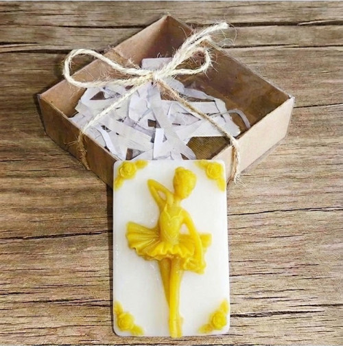 Bebek mevlidi, doğum günü partileri, söz/nişan hatırası veya bale okulu etkinlikleri için unutulmaz bir hediye seçeneğidir. Teknik Özellikler: Renk: Beyaz Zemin - Sarı Figür Ölçüler: [Örn: 9 cm x 6 cm] (Kendi kalıbınızın ölçüsünü yazmalısınız) Koku: [Örn: Pudra / Vanilya / Yasemin] Üretim: %100 El Yapımı / Butik Üretim Kullanım Önerisi: Dekoratif amaçlı kullanacaksanız direkt güneş ışığından ve nemden uzak tutarak formunu uzun yıllar koruyabilirsiniz.