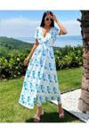 - Zarif kruvaze yakası ile dikkat çeken bu elbise, günlük kullanım için idealdir.