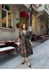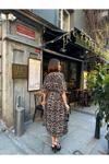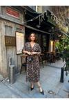 Betül Aksu Butik Leopar Desenli Kruvaze Yaka Elbise