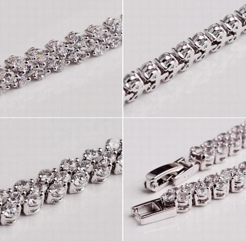 Beyaz Altın Kalp Kristal Taş Görünümlü Su Yolu Bileklik Hediye Kutulu