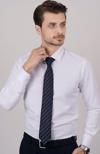 Beyaz Armür & Lacivert Çizgi Desen Hediye Kutulu Gömlek Kravat Seti