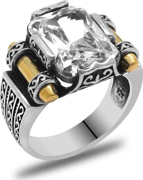 Kaplangözü Taşlı Elegance Tasarım 925 Ayar Gümüş Erkek Yüzük - Image 1