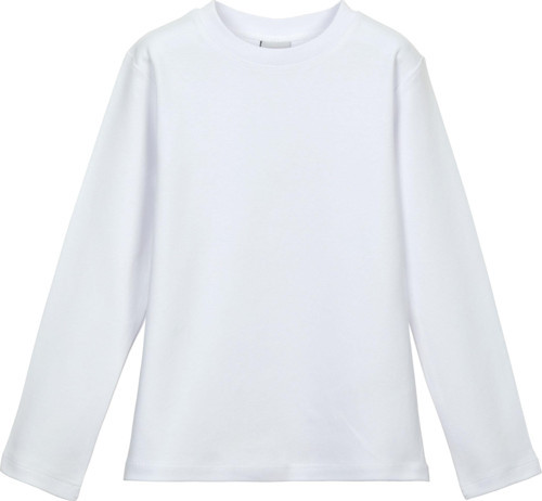 Beyaz Basic Unisex Çocuk Sıfır Yaka Uzun Kollu Tişört