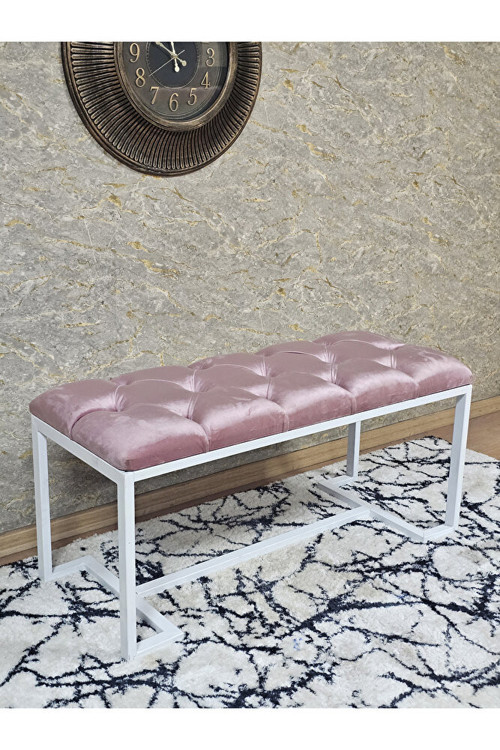 Zafir Beyaz Boyalı - L - Ayaklı 100 cm x 38 cm Oturak - Bench - Makyaj Taburesi - Makyaj Oturak Pembe Renk 100 x 40 Boyut/Ebat
