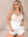 Beyaz Dantel İşlemeli İnce Askılı Saten Şortlu Takım
