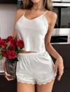 Beyaz Dantel İşlemeli İnce Askılı Saten Şortlu Takım