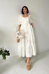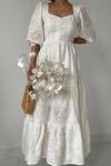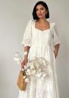 Beyaz Düğmeli Brode Elbise