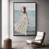 Beyaz Elbiseli Kadın Yağlı Boya Dokulu Tablo 50X70 Siyah Çerçeveli
