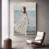 Beyaz Elbiseli Kadın Yağlı Boya Dokulu Tablo 50X70 Gümüş Çerçeveli - Image 1