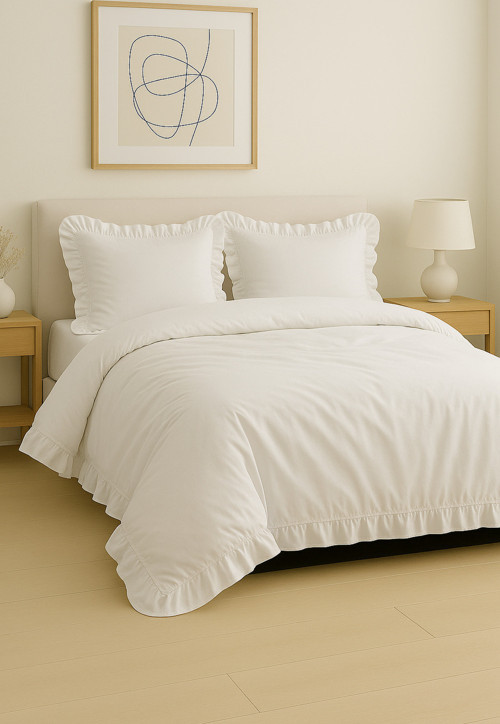 Yatak odanıza romantik bir dokunuş katmak istiyorsanız, bu beyaz fırfırlı nevresim takımı tam size göre. Yumuşacık dokusu ve şık fırfır detaylarıyla hem konforu hem de estetiği bir arada sunar. Özenle hazırlanmış bu takım, sade ama gösterişli bir atmosfer yaratmak isteyenler için ideal. Ürün İçeriği: 1 Adet Nevresim: 200x220 cm 2 Adet Yastık Kılıfı: 50x70 cm Modern yatak odalarına nostaljik bir hava katmak isteyenlerin favorisi olacak bu set, zarif detaylarıyla göz alıcı bir uyku alanı yaratır.