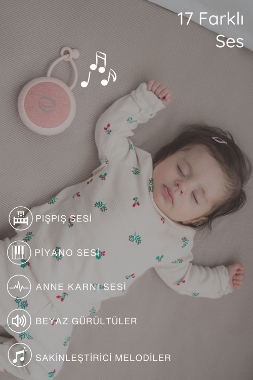 17 farklı ses seçeneğiyle; pışpış, piyano ve doğadaki rahatlatıcı tonları bir araya getirerek bebeğinize anne karnındaki güven hissini yeniden yaşatır. Beyaz gürültünün maskeleme gücü sayesinde dış sesleri bastırır ve uykuların bölünmesini engeller. 👶 Kolik krizlerinde ise sakinleştirici bir destek sunar. 💤